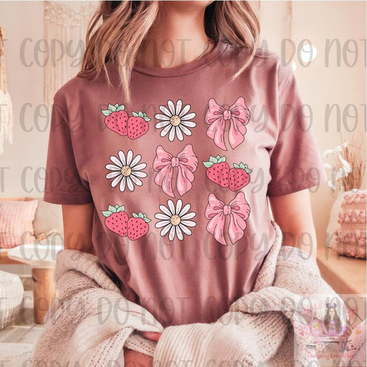 Summer Vibes Floral Pink Bows Strawberry Shirt