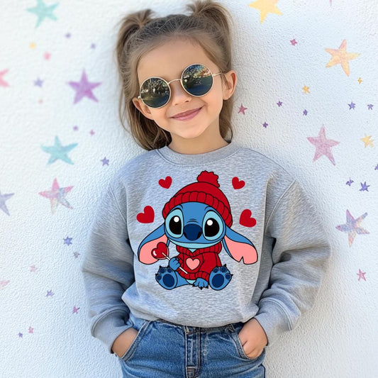 Cute Blue Alien Sucker and Hearts Kids Shirt