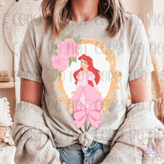 Red Head Mermaid Princess Coquette Frame Bow Shirt